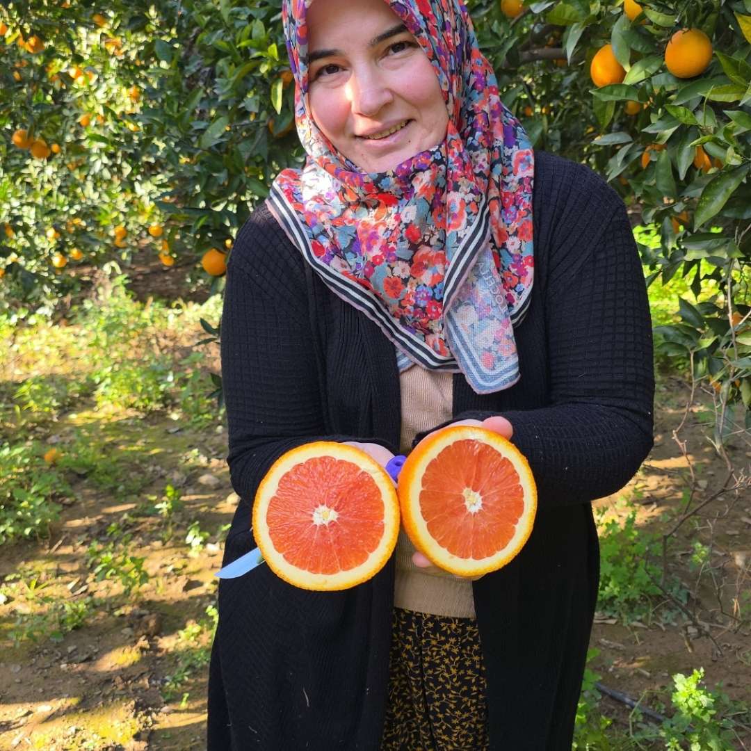 Mevsiminde hasat edilen, yoğun aromalı ve bol sulu kan portakalı, kendine özgü kırmızı rengi ve ferahlatıcı tadıyla sofralarınıza doğallık katar.